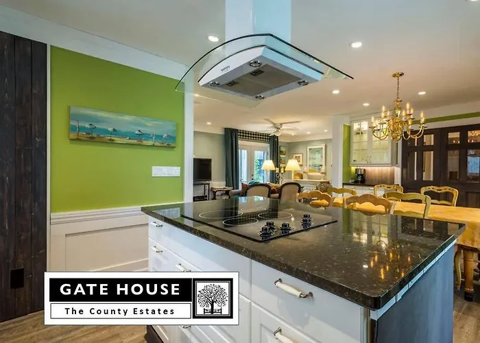 Gate House Comfort Plus Own Lake Access, Dock, 4 Mins To Beach Villa beschikt over een keuken, evenals koffie- en theevoorzieningen om ter plaatse te dineren. Gasten kunnen ook gebruikmaken van een koelkast en een oven om hun eigen maaltijd te bereiden.